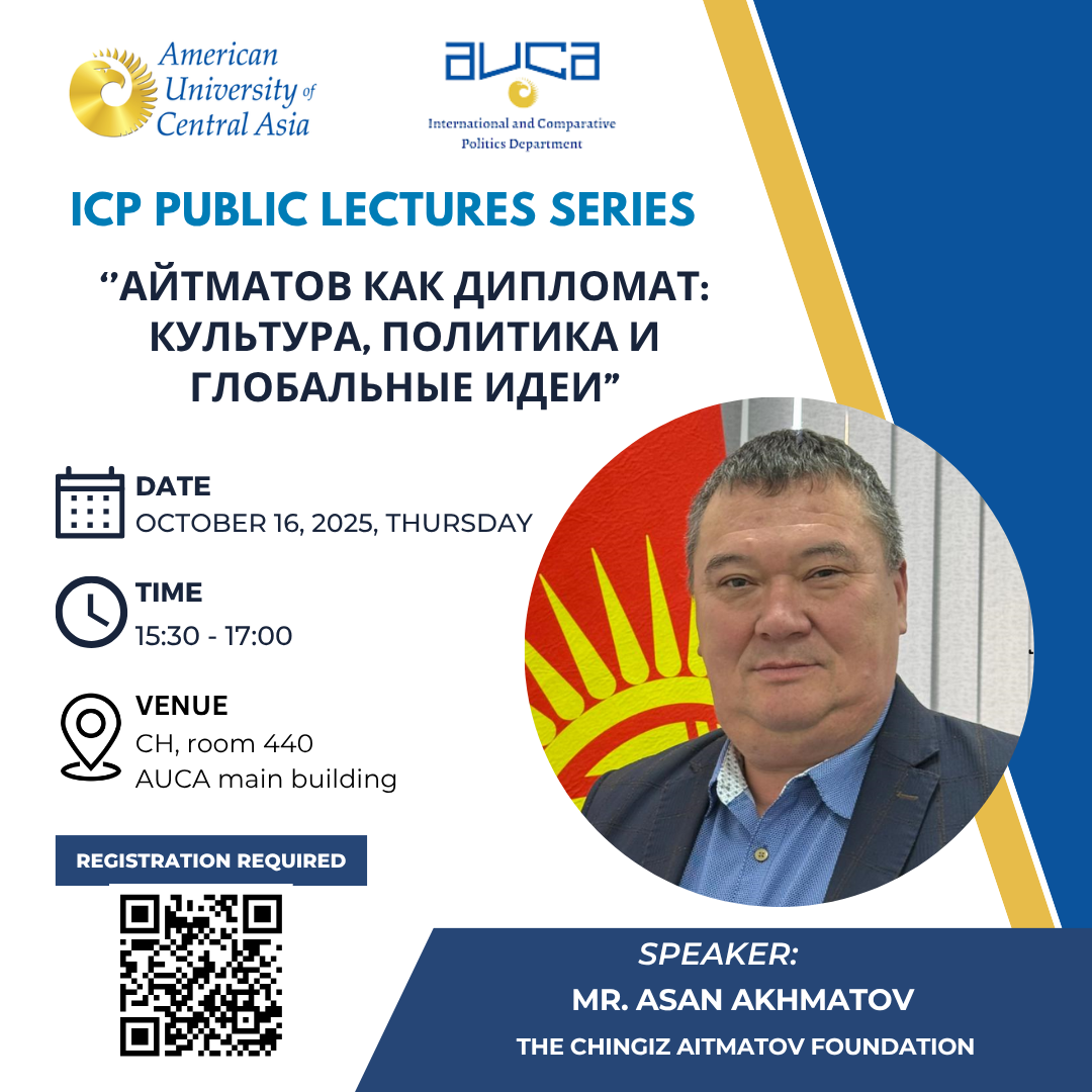 The ICP Department continues听its Public Lectures听Series with Mr. Asan Akhmatov, "Aitmatov as a Diplomat: Culture, Politics, and Global Ideas".